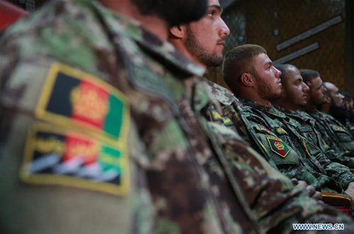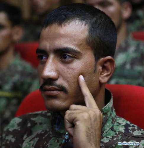An Afghan army soldier takes part in his graduation ceremony at Kabul Military Training Center (KMTC) in Kabul, capital of Afghanistan, Sept. 8, 2019. A total of 236 newly graduated Afghan officers joined the country's national army on Sunday, an army source said. (Photo: Rahmatullah Alizadah/Xinhua)