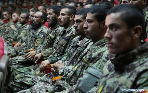 Afghan army soldiers take part in their graduation ceremony at Kabul Military Training Center (KMTC) in Kabul, capital of Afghanistan, Sept. 8, 2019. A total of 236 newly graduated Afghan officers joined the country's national army on Sunday, an army source said. (Photo: Rahmatullah Alizadah/Xinhua)