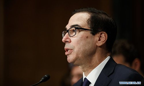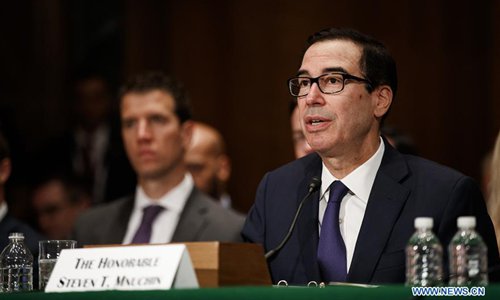 US Treasury Secretary Steven Mnuchin speaks at a Senate Banking, Housing, and Urban Affairs Committee hearing regarding housing finance reforms on Capitol Hill in Washington D.C., the United States, on Sept. 10, 2019. (Photo by Ting Shen/Xinhua)
