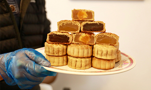 Mooncakes made by local Chinese in Canberra, Australia. (Photo by Chu Chen/Xinhua)
