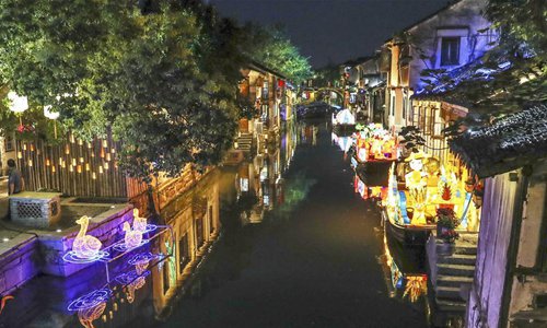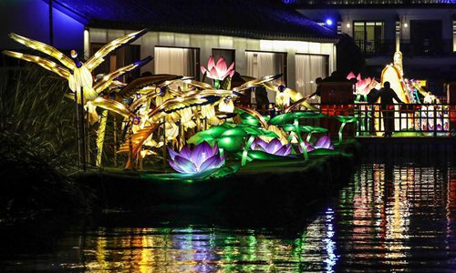 Colorful lanterns are displayed during a lantern fair celebrating the Mid-Autumn Festival in Zhouzhuang Township of Kunshan City in east China's Jiangsu Province, Sept. 12, 2019. The lantern fair is held here from Sept. 12 to Oct. 8. (Xinhua/Yang Lei)