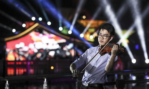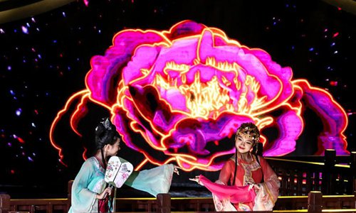 An artist from southeast China's Taiwan performs during a lantern fair celebrating the Mid-Autumn Festival in Zhouzhuang Township of Kunshan City in east China's Jiangsu Province, Sept. 12, 2019. The lantern fair is held here from Sept. 12 to Oct. 8. (Xinhua/Yang Lei)