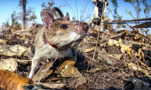 Trained rat sniffs in a rat race to clear landmines in Cambodian countryside. Photo: IC