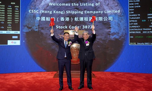 CSSC (Hong Kong) Shipping, a subsidiary of leading state-owned shipbuilder CSSC, floats shares on the Hong Kong stock exchange in an IPO on Monday. The company suggested that the trade war has had basically no impact on its operations, as less than 20 percent of the routes are affected by the trade row and customers are adjusting. The shares closed down 7.5 percent at HK$1.24 ($0.16). Photo: VCG