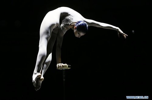 An artist performs during a new circus season in Kiev, Ukraine, Sept. 14, 2019. (Photo: Sergey Starostenko/Xinhua)