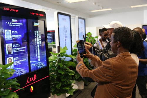 Foreign journalists photograph digital display screens at a media workshop for the Belt and Road News Network in Beijing on Monday. A total of 50 senior editors and journalists from 46 mainstream media organizations in 26 African and Latin American countries attended the opening ceremony. Photo: Courtesy of People's Daily