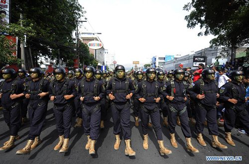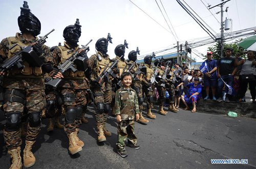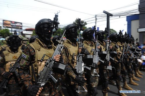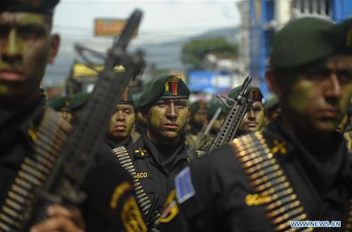 Soldiers take part in a celebration for the Independence Day of El Salvador in San Salvador, El Salvador, Sept. 15, 2019. (Photo: Alexander Pena/Xinhua)