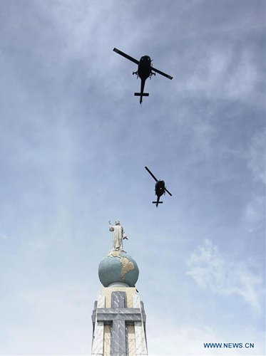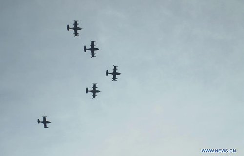 Military aircrafts take part in a celebration for the Independence Day of El Salvador in San Salvador, El Salvador, Sept. 15, 2019. (Photo: Alexander Pena/Xinhua)