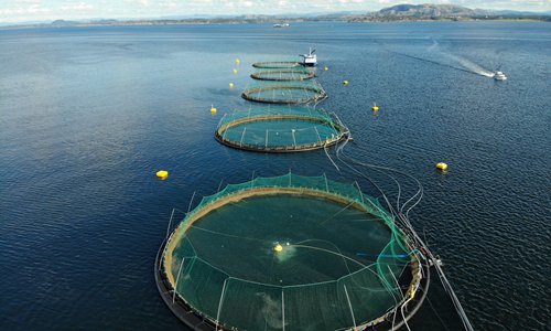 Aerial photo taken on September 8 shows a Salmon farm in Bergen, Norway. Photo: Deng Zijun/GT