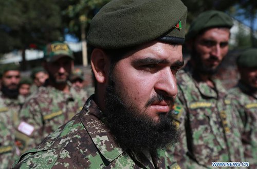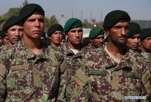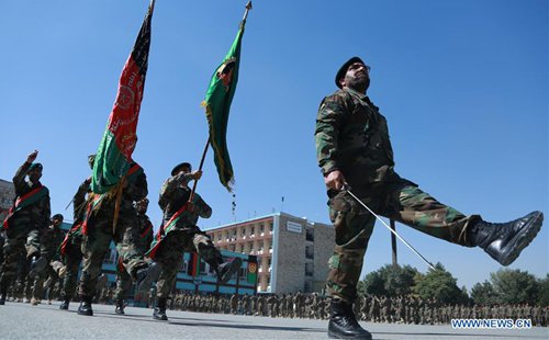 Afghan soldiers take part in a graduation ceremony at Kabul Military Training Center (KMTC) in Kabul, capital of Afghanistan, Sept. 16, 2019. A total of 1,154 newly graduated Afghan soldiers joined the country's national army on Monday, an army source said. (Photo: Xinhua)