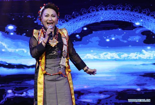 A singer from China's Tibet Autonomous Region performs during a concert in Ulan Bator, Mongolia, Sept. 16, 2019. A concert celebrating Mongolia's longtime friendship with China was staged in the capital city on Monday evening. (Photo: Suriya/Xinhua)