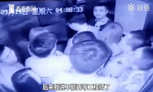 Many people, including a groom got trapped in an elevator of the Lavande Hotel in Harbin, Northeast China's Heilongjiang Province for almost an hour on September 14, 2019. Photo: Screenshot from video by Kankan News