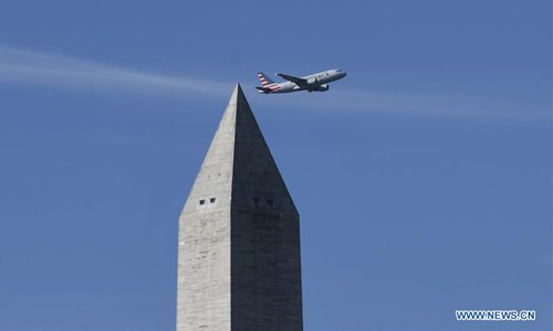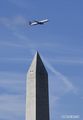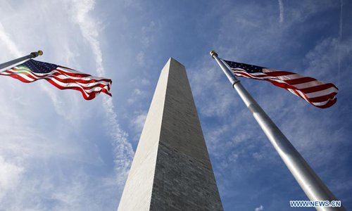 The Washington Monument is seen in Washington D.C., the United States, on Sept. 19, 2019. U.S. first lady Melania Trump, alongside a group of local elementary school students, helped cut the ribbon to reopen the Washington Monument on Thursday. The 555-foot tall marble obelisk, named for the nation's first president, now has an upgrade elevator and a new permanent screening facility after years of renovations, according to the National Park Service. (Xinhua/Liu Jie)