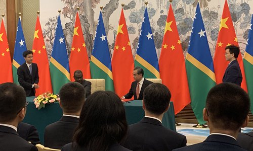 Chinese Sate Councilor and Foreign Minister Wang Yi and Solomon Islands Foreign Minister Jeremiah Manele signed a joint communiqué during the ceremony of the formal establishment of bilateral relations the two nations that marked the formal establishment of diplomatic ties.
