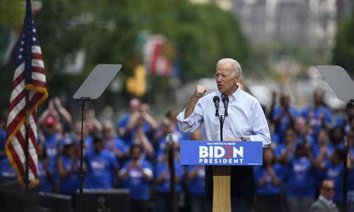 Former US Vice President Joe Biden speaks during a rally in Philadelphia May 18, 2019. (Xinhua/Liu Jie)