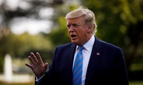 US President Donald Trump speaks to reporters before leaving the White House in Washington D.C. the United States, on Aug. 2, 2019. (Photo by Ting Shen/Xinhua)