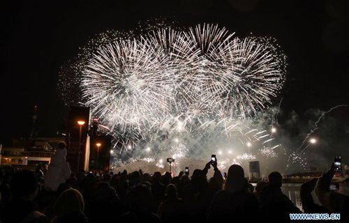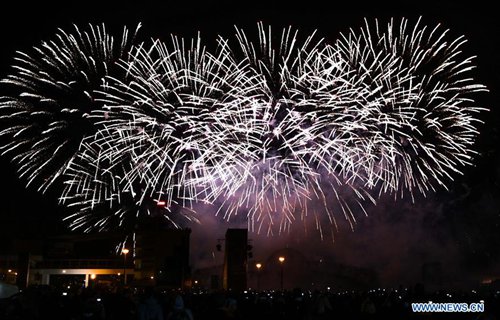 Fireworks are displayed during the Circle of Light Moscow International Festival in Moscow, Russia, Sept. 21, 2019. The Circle of Light Moscow International Festival runs from Sept. 20 to 24 this year. (Photo: Maxim Chernavsky/Xinhua)