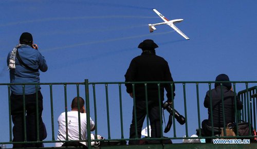 Spectators watch a CL-415 aircraft making water drop demo at the Tanagra Air Base, north of Athens, Greece, on Sept. 21, 2019. Greece's largest air show, the Athens Flying Week (AFW) Tanagra International Air Show 2019, took off Saturday for its 8th consecutive year at Tanagra Air Base, about 70 kilometers northwest of Athens. (Photo: Xinhua)