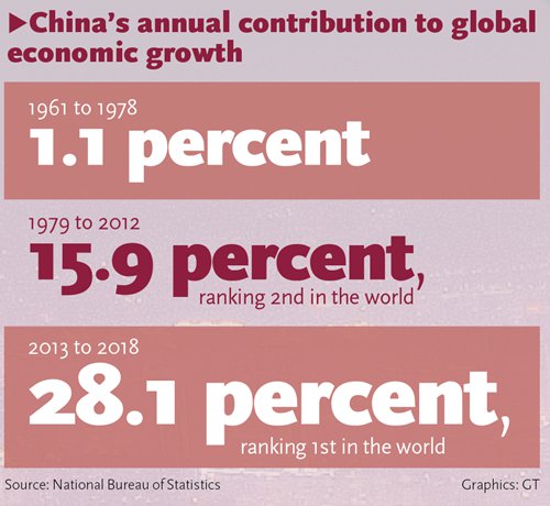 In 2018, the ratio of China's contribution to global economic growth was 27.5 percent, 24.4 percentage points higher than in 1978, the report said.