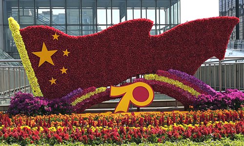 Characters seen on a building in the city center of Zhengzhou, Central China's Henan Province read "I love you China" in a celebration of the 70th anniversary of the founding of the People's Republic of China on Friday Photo: VCG