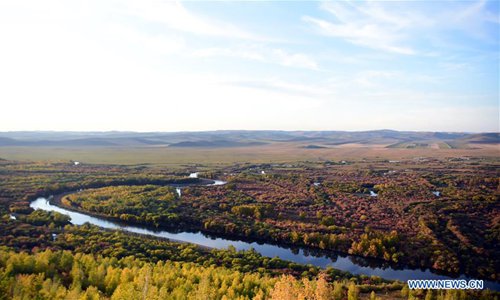 Photo taken on Sept. 21, 2019 shows the autumn scenery in Ergun, Hulun buir City, north China's Inner Mongolia Autonomous Region. (Photo: Xinhua)