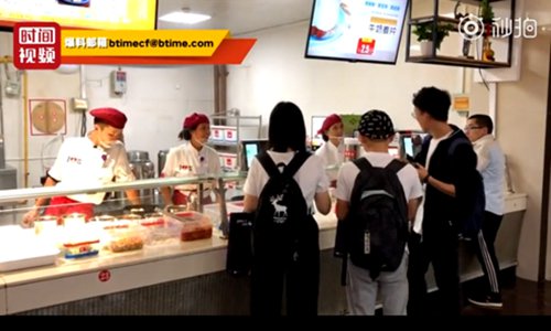 Several students buy food at one of canteens of Xidian University. Photo: screenshot of video posted by Btime