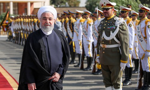 A handout picture provided by the Iranian presidency on September 23, 2019 shows President Rouhani attending a farewell ceremony at the Mehrabad airport in Tehran, shortly before leaving Tehran for the UN General Assembly in New York. Photo: AFP