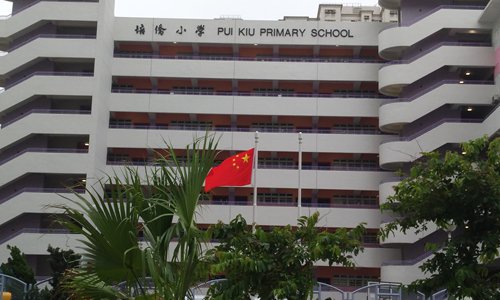 A Chinese national flag over the campus of Pui Kiu Primary School in Siu Sai Wan, Hong Kong on September 2. Photo: Wang Wenwen/GT