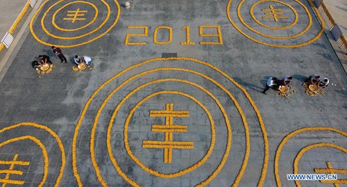 Aerial photo taken on Sept. 23, 2019 shows villagers participating in a farmer skill competition at Nanhe County, north China's Hebei Province. Farmers across the country celebrate the Chinese farmers' harvest festival, which falls on the Autumn Equinox, or Sept. 23 this year. (Photo: Zhang Chi/Xinhua)