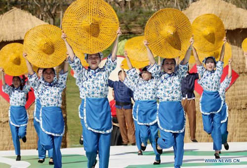 Villagers perform during an event to celebrate the Chinese farmers' harvest festival in Deqing County of Huzhou City, east China's Zhejiang Province, Sept. 23, 2019. Farmers across the country celebrate the Chinese farmers' harvest festival, which falls on the Autumn Equinox, or Sept. 23 this year. (Photo: Xie Shangguo/Xinhua)