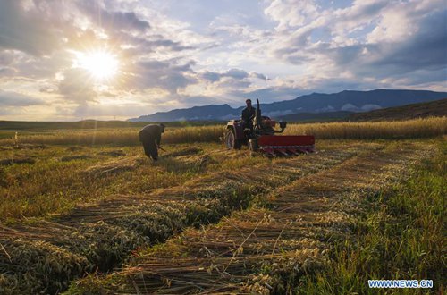 Farmers harvest crops at Mayinghai Village of Ningwu County, north China's Shanxi Province, Sept. 21, 2019. Farmers across the country celebrate the Chinese farmers' harvest festival, which falls on the Autumn Equinox, or Sept. 23 this year. (Photo: Cao Jianguo/Xinhua)