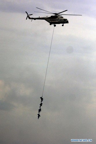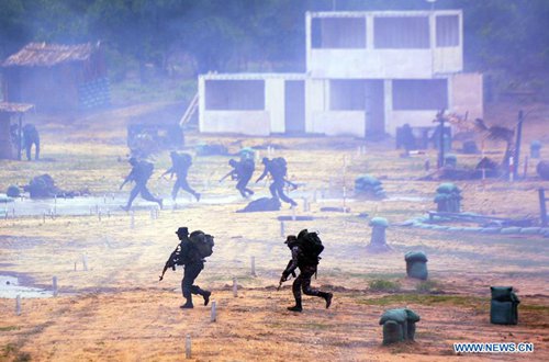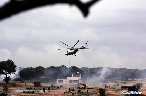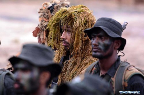 Participants attend the "Exercise Cormorant Strike X-2019" in Kuchchveli, Sri Lanka, on Sept. 23, 2019. The "Exercise Cormorant Strike X-2019" organized by the Sri Lanka Army was concluded on Monday. (Photo: Gayan Sameera/Xinhua)