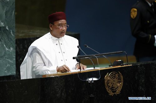 Niger's President Mahamadou Issoufou addresses the General Debate of the 74th session of the UN General Assembly at the UN headquarters in New York, on Sept. 24, 2019. The General Debate of the 74th session of the UN General Assembly opened on Tuesday with the theme of "Galvanizing multilateral efforts for poverty eradication, quality education, climate action and inclusion." (Photo: Xinhua)