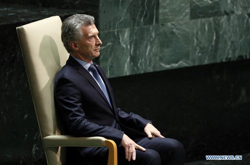 Argentine President Mauricio Macri waits to address the General Debate of the 74th session of the UN General Assembly at the UN headquarters in New York, on Sept. 24, 2019. The General Debate of the 74th session of the UN General Assembly opened on Tuesday with the theme of "Galvanizing multilateral efforts for poverty eradication, quality education, climate action and inclusion." (Photo: Xinhua)