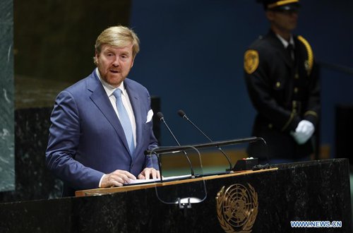 Dutch King Willem-Alexander addresses the General Debate of the 74th session of the UN General Assembly at the UN headquarters in New York, on Sept. 24, 2019. The General Debate of the 74th session of the UN General Assembly opened on Tuesday with the theme of "Galvanizing multilateral efforts for poverty eradication, quality education, climate action and inclusion." (Photo: Xinhua)