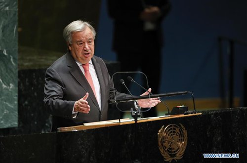 The United Nations (UN) Secretary-General Antonio Guterres addresses the opening of the General Debate of the 74th session of the UN General Assembly at the UN headquarters in New York, Sept. 24, 2019. (Photo: Xinhua)