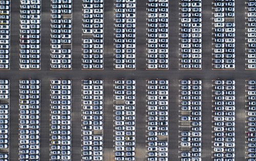 Aerial photo taken on July 9, 2019 shows Audi vehicles awaiting transfer at the parking lot of FAW-Volkswagen in Changchun, northeast China's Jilin Province. The Sino-German auto joint venture FAW-Volkswagen said a record 311,871 Audi vehicles were sold in China in the first half of 2019, up 2.1 percent year-on-year. (Photo: Xinhua)