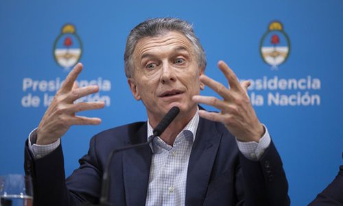 President of Argentina Mauricio Macri speaks during a press conference at the Casa Rosada presidential palace in Buenos Aires, capital of Argentina, Aug. 12, 2019.Photo:Xinhua