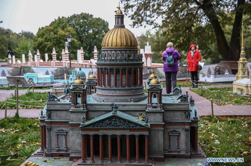 A model of St. Isaac's Cathedral is seen at the "Russia in Miniatures" exhibition in Moscow, Russia, on Sept. 25, 2019. More than 80 models of famous Russian landmarks are on display at the "Russia in Miniatures" exhibition in Moscow, which will run until October this year. (Photo: Maxim Chernavsky/Xinhua)