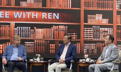 Huawei's founder and CEO Ren Zhengfei at a panel called "A Coffee with Ren," in Shenzhen, South China's Guangdong Province on Thursday. Photo: Chen Qingqing/GT