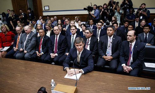 US Acting Director of National Intelligence Joseph Maguire (front) testifies before the House Intelligence Committee during a hearing titled "Whistleblower Disclosure" on Capitol Hill in Washington D.C., the United States, on Sept. 26, 2019. (Photo by Ting Shen/Xinhua)