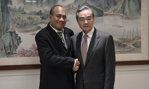 During their meeting, Wang said China highly appreciated Kiribati's statement last week, which acknowledged the one-China principle and declared its severance of the so-called "diplomatic ties" with the Taiwan authorities and restoration of diplomatic relations with China, Xinhua reported.
