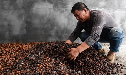 A villager dries the Chinese torreya nuts in Longxi Village of Jidong Township in Shaoxing, east China's Zhejiang Province, Sept. 27, 2019. Jidong Township is a major production area of the Chinese torreya nuts with the total output reaching over 450 tons each year. (Xinhua/Huang Zongzhi)