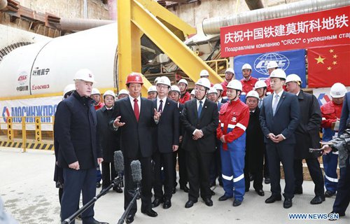 Li Zhanshu, chairman of the Standing Committee of the National People's Congress of China, inspects the Moscow metro project of the China Railway Construction Corporation in Moscow, Russia, Sept. 25, 2019. Li paid an official goodwill visit to Russia from Sept. 25 to 28. (Photo: Xinhua)
