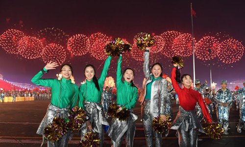 People participate in a grand evening gala marking the 70th founding anniversary of the People's Republic of China (PRC) in Beijing, capital of China, Oct. 1, 2019. (Xinhua/Ju Huanzong)