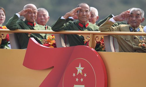 More than 200,000 people took part in the over two-and-a-half-hour celebrations in the morning for the 70th founding anniversary of the People's Republic of China (PRC) that featured marching soldiers, roaring jets, rumbling tanks, colorful floats, singing children and cheering crowds.
