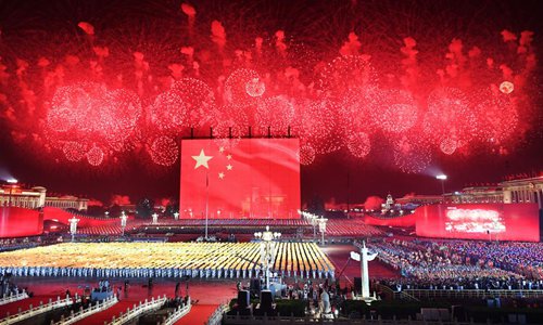 A grand evening gala is staged on Tian'anmen Square to celebrate the 70th anniversary of the founding of the People's Republic of China (PRC), in Beijing, capital of China, Oct. 1, 2019. (Xinhua/Yin Bogu)