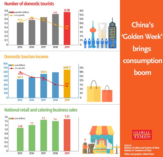 "The data shows that local governments have put a lot of effort into boosting cultural and tourism markets. Domestic demand will be stimulated only if governments are willing to boost the market," Tian Yun, a vice director of the Beijing Economic Operation Association, told the Global Times on Monday. The rising data also injects positive momentum in the downward economy for the fourth quarter, he added.