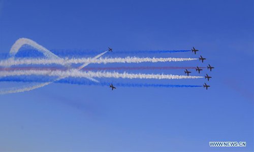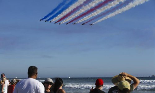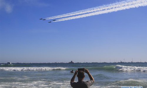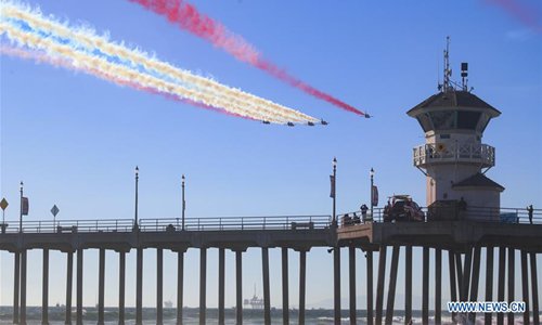 Photo taken on Oct. 6, 2019 shows a view of the Great Pacific Airshow at Huntington Beach, California, the United States. (Xinhua/Li Ying)