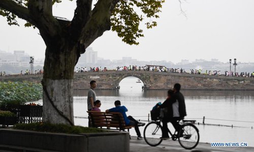 Tourists go sightseeing at the West Lake scenic area in Hangzhou, capital of Zhejiang Province, Oct. 7, 2019. According to the Ministry of Culture and Tourism (MCT), Chinese tourists made 782 million visits to recreational and cultural activities during the week-long National Day holiday, marking a year-on-year increase of 7.81 percent. China's tourism industry has raked in over 649.71 billion yuan (about 90.9 billion U.S. dollars) in revenue from domestic tourists during the holiday, up 8.47 percent from a year earlier. (Xinhua/Huang Zongzhi)
